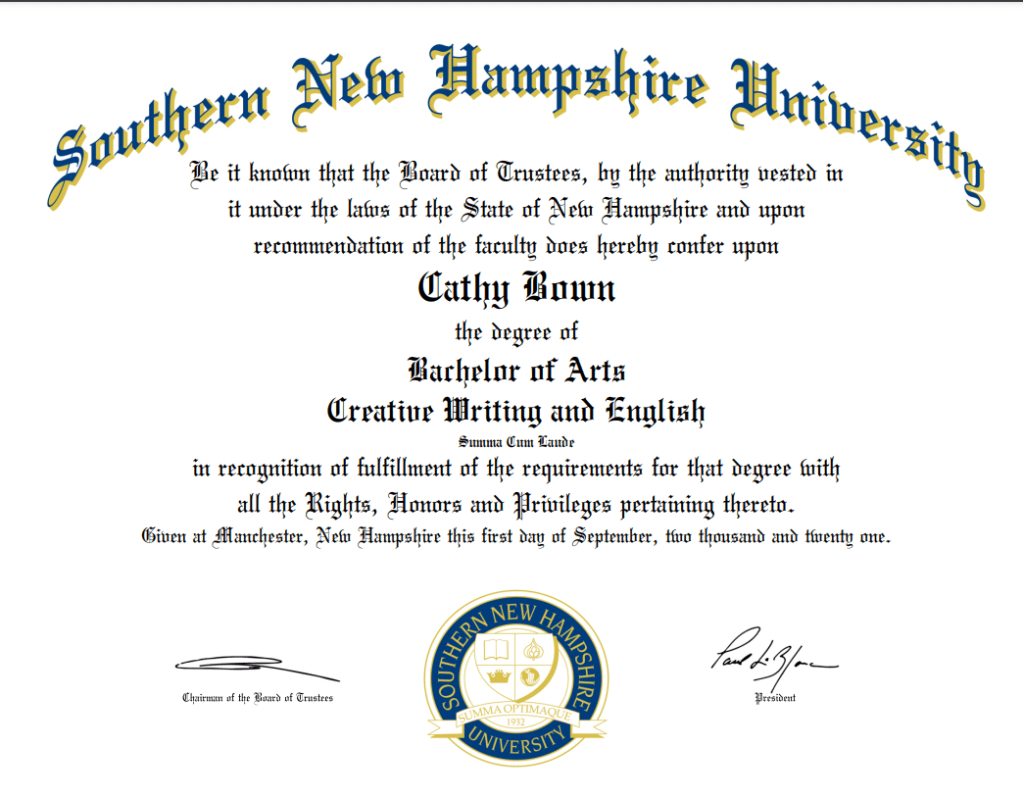I am one term (8 weeks) away from completing my second BA, which is in History. I’m so eager to be done with my undergraduate college experience. I plan to take a few months off of school to spend time with my children and grandchildren and extended family. And, of course, hopefully do some writing. And then I plan to pursue a Masters degree in English.
