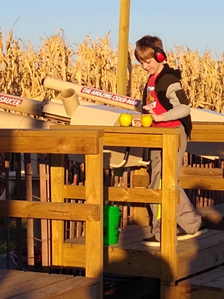 Above is my granddaughter playing around. Below are my boys having some fun with the apple cannons.