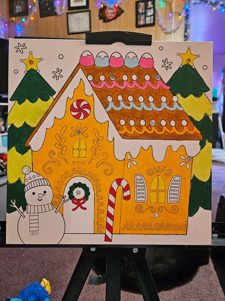 I decided to start with preprinted canvases and paint-by-number canvases because I have trouble putting the images in my mind onto paper without words.